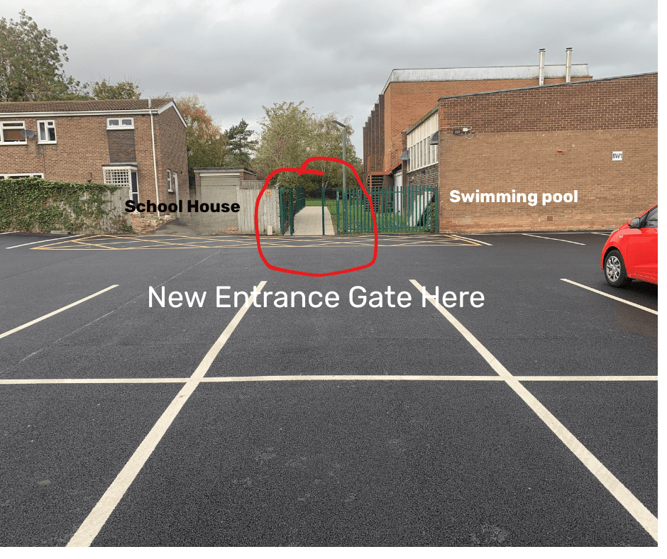 - At the back of the car park (next to the school house and swimming pool), look for the green gate.